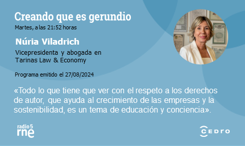 Núria Viladrich, vicepresidenta y abogada en este bufete, participa en el programa de radio Creando que es gerundio para abordar por qué es importante que las empresas trabajen de forma respetuosa con la cultura escrita y el impacto positivo que tiene en los criterios ESG.