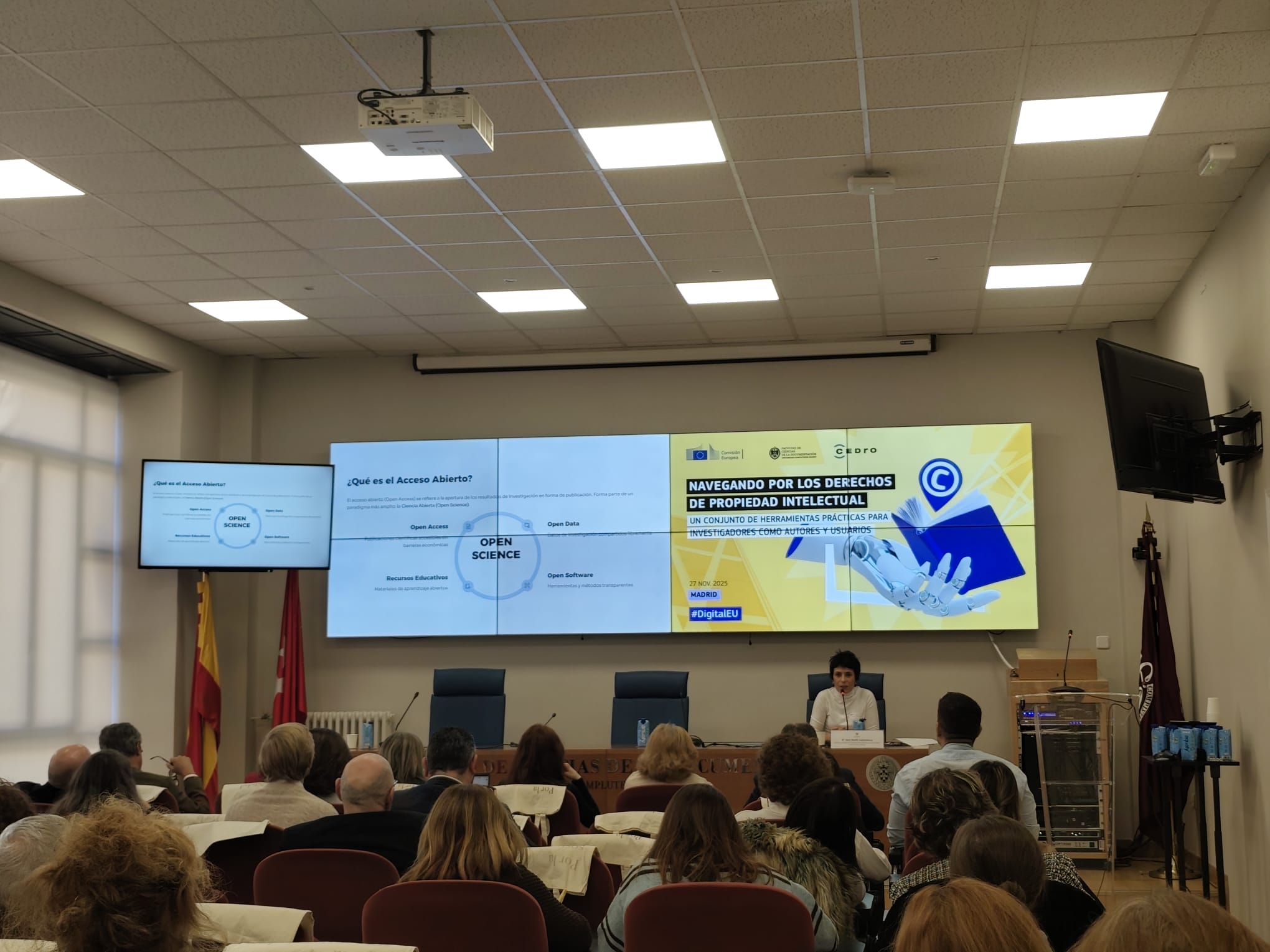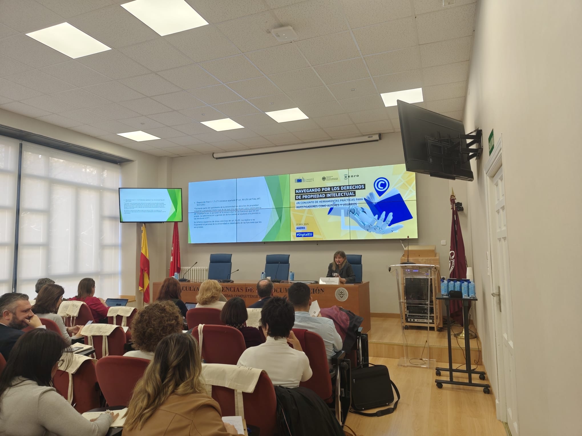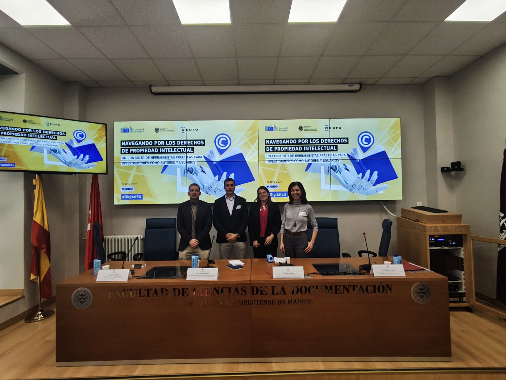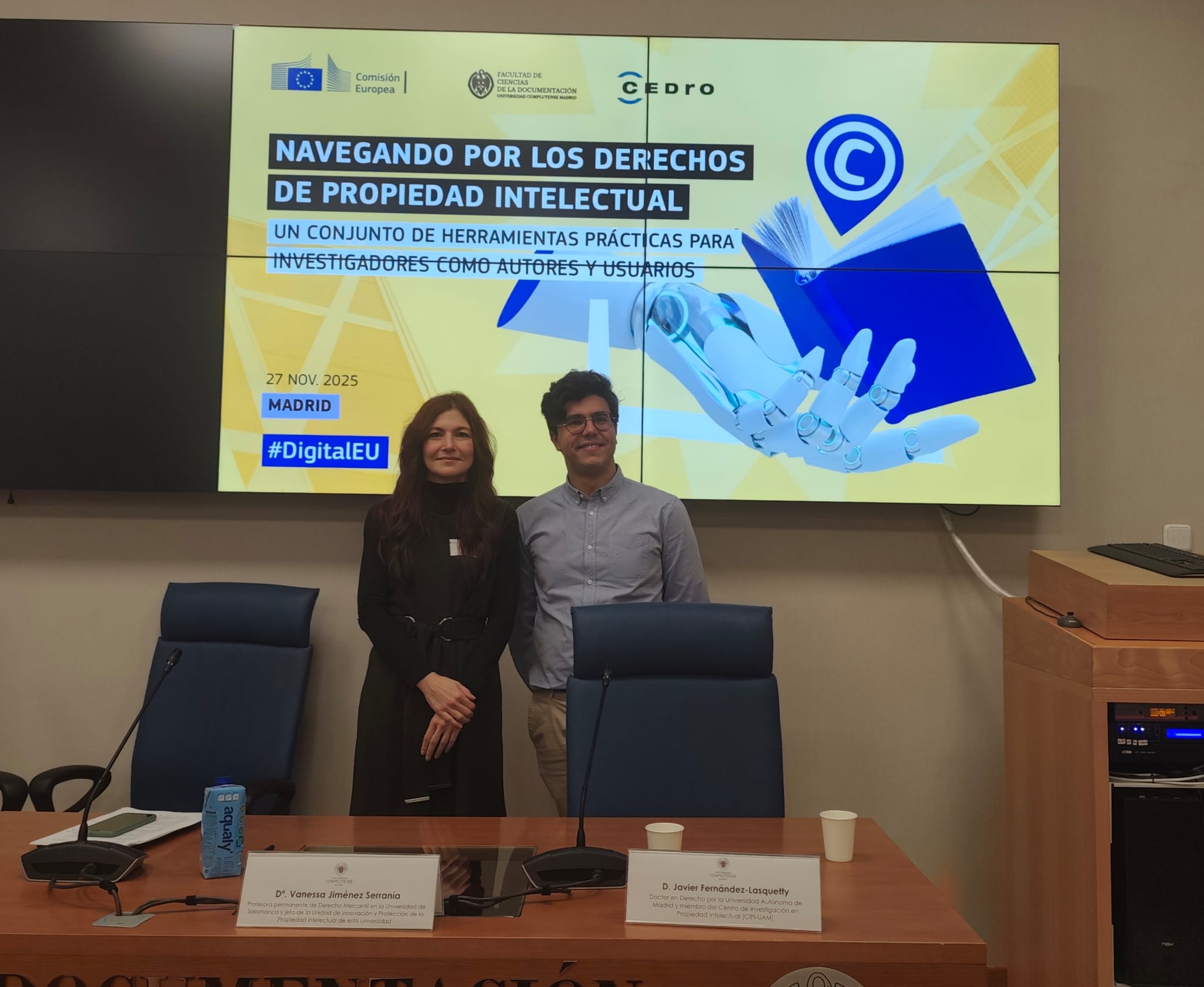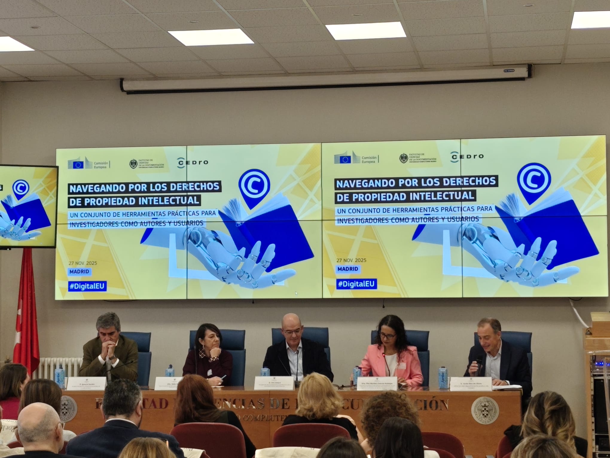 Madrid, 01/12/2025. CEDRO y la Comisión Europea organizaron, en Madrid, el pasado 27 de noviembre la jornada «Navegando por los derechos de Propiedad Intelectual: un conjunto de herramientas prácticas para investigadores como autores y usuarios». Este encuentro, dirigido a personal investigador —docentes y alumnado—, tuvo como objetivo principal ofrecer recursos prácticos para gestionar adecuadamente los derechos de autor en el ámbito de la investigación académica.